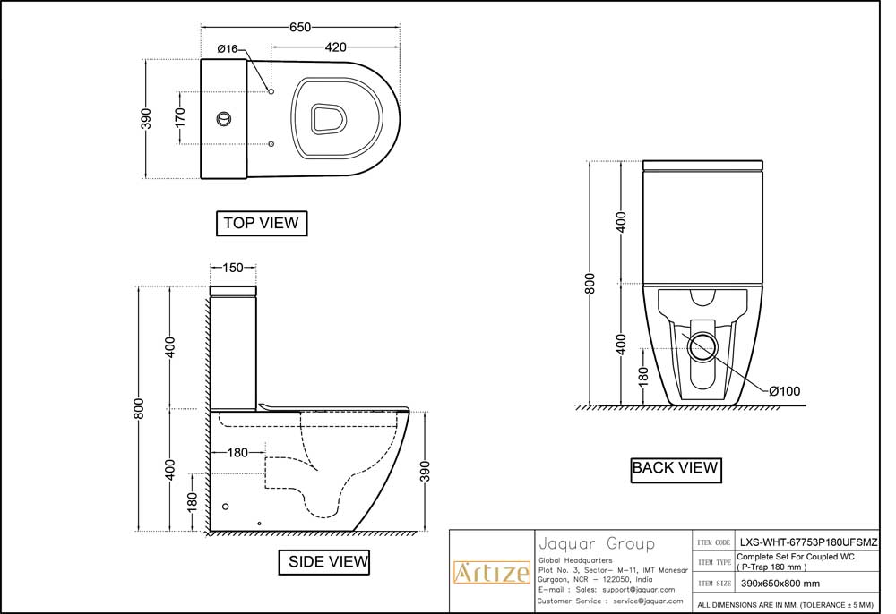 • Jaquar reserves the right at its sole discretion, to change/modify/alter any product specification at any time without notice, where improvement can be effected in design, development and dimensions.