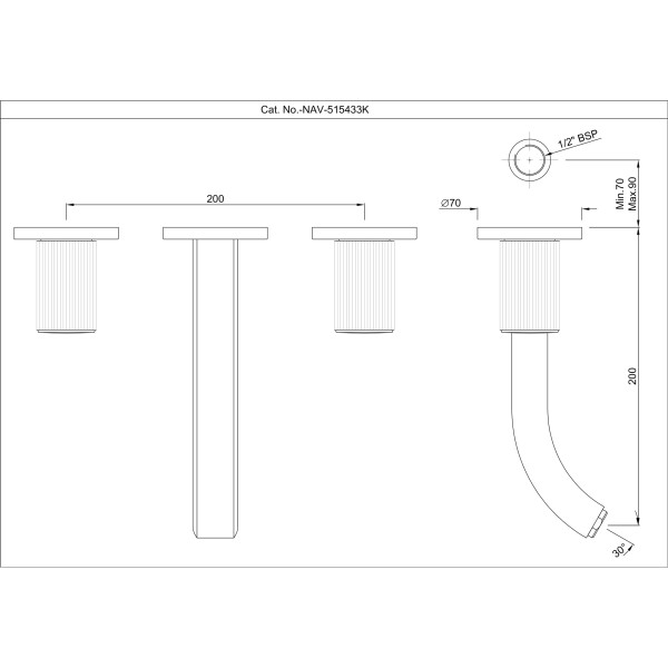 Exposed Part Kit of In-wall 3-Hole Basin Mixer with Basin Spout (Compatible In-wall part NAV-515433C is sold separately)