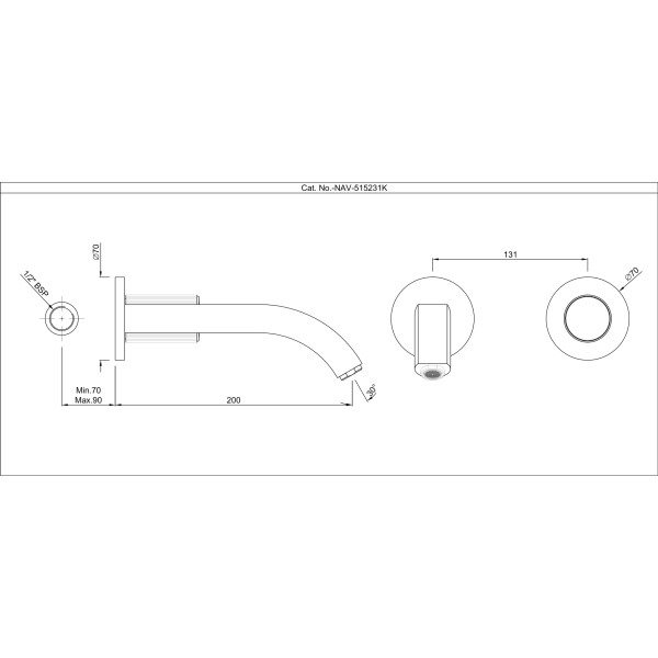 Exposed Parts of Built-in In-wall Manual Valve with basin spout, two separate wall flanges and operating Knob (Compatible in wall part NAV-515233C is sold separately)