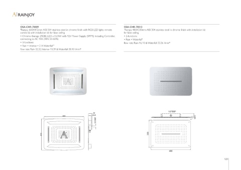 "Rainjoy 600X472mm AISI 304 stainless steel in chrome finish with RGB LED lights remote "Rainjoy 480X330mm AISI 304 stainless steel in chrome finish with installation kit