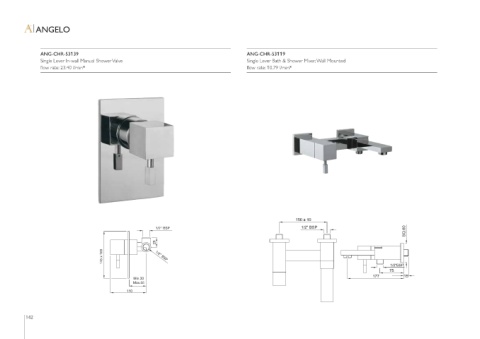 ANGELO ANG-CHR-53139 ANG-CHR-53119 Single Lever In-wall Manual Shower Valve Single Lever Bath & Shower Mixer, Wall Mounted flow rate: 23.40 l/min* flow rate: 10.79 l/min* 1/2" BSP 29 145 x 100 1/2" BSP Min.30 Max.55 110 142