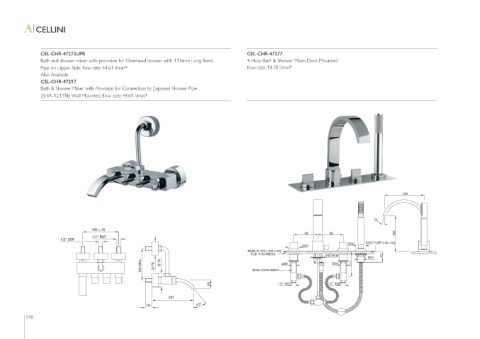 Bath and shower mixer with provision for Overhead shower with 115mm Long Bend 4-Hole Bath & Shower Mixer, Deck Mounted