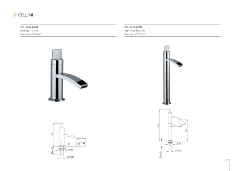 CELLINI CEL-CHR-47001 CEL-CHR-47021 Basin Tap 1/2 Inch High Neck Basin Tap flow rate: 6.96 l/min* flow rate: 6.97 l/min* 315 92 60° 220 92 Ø 48 Ø 48 1/2"BSP Max. 50 1/2"BSP 177