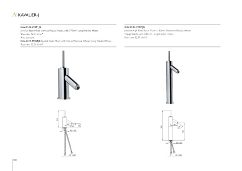 KAV-CHR-49051JB Joystick Basin Mixer with Popup Waste & 375mm Long Braided Hoses