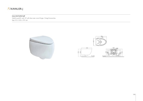 KAVALIER-J KAS-WHT-49951UF Wall Hung WC with UF soft close seat cover, Hinges , Fixing Accessories, Size: 410 x 550 x 370 mm 550 390 410 550 180 Ø60 410 370 370 330 370 410 195 295 335 FL.LVL FL.LVL Ø100 235 195