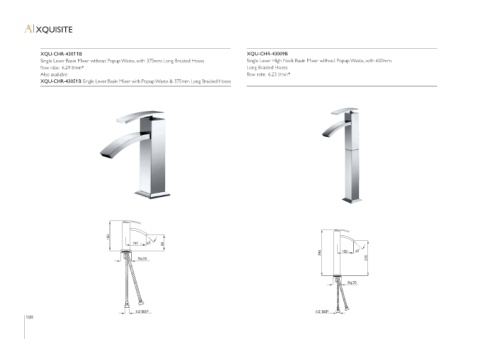 XQU-CHR-43051B Single Lever Basin Mixer with Popup Waste & 375mm Long Braided Hoses