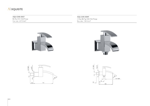XQUISITE XQU-CHR-43037 XQU-CHR-43041 Bib Tap With Wall Flange 2-Way Bib Tap With Wall Flange flow rate: 6.97 l/min* flow rate: 7.04 l/min* 1/2" BSP sq.50 1/2" BSP Sq. 50 60° 60° 1/2" BSP 55 25 25 145 145 204