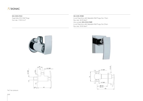 Angle Valve With Wall Flange In-wall Stop Valve with Adjustable Wall Flange, Size 15mm