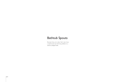 Bathtub Spouts Dramatic lines, and a clean finish make these a sophisticated, but refreshing addition to a luxurious, elegant bath. 224