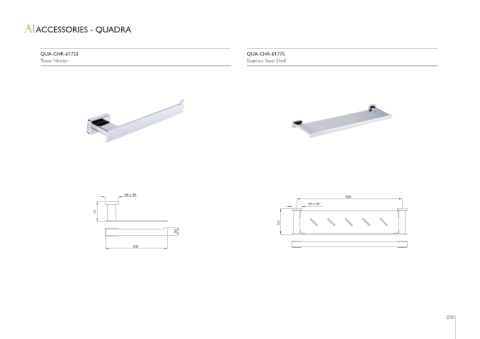 ACCESSORIES - QUADRA QUA-CHR-61723 QUA-CHR-61775 Towel Holder Stainless Steel Shelf 50 x 30 530 50 x 30 74 131 30 230 239