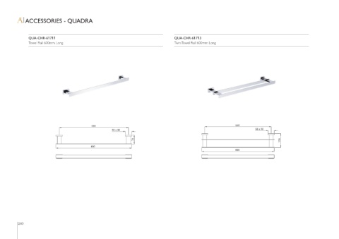 ACCESSORIES - QUADRA QUA-CHR-61711 QUA-CHR-61713 Towel Rail 600mm Long Twin Towel Rail 600mm Long 550 550 50 x 30 50 x 30 74 116 600 600 240