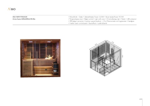 Artize Sauna 2200x2000x2100, Bio • Tempered glass door • Digital control • Light with cover • Chromotherapy light • Radio • USB connector