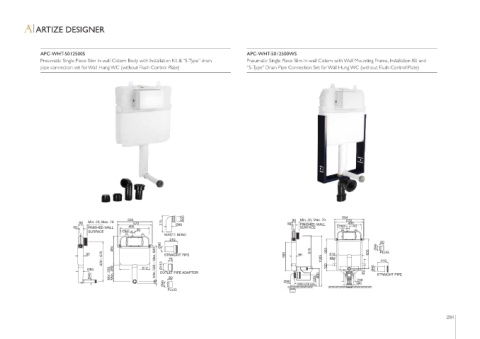 Pneumatic Single Piece Slim In-wall Cistern Body with Installation Kit & “S-Type” drain Pneumatic Single Piece Slim In-wall Cistern with Wall Mounting Frame, Installation Kit and
