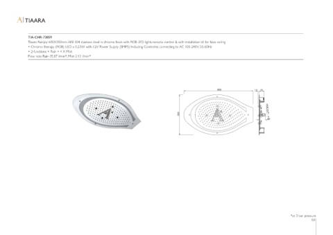 Tiaara Rainjoy 600X350mm AISI 304 stainless steel in chrome finish with RGB LED lights remote control & with installation kit for false ceiling