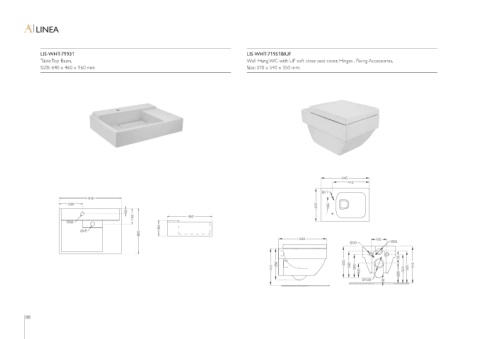 Table Top Basin, Wall Hung WC with UF soft close seat cover, Hinges , Fixing Accessories,
