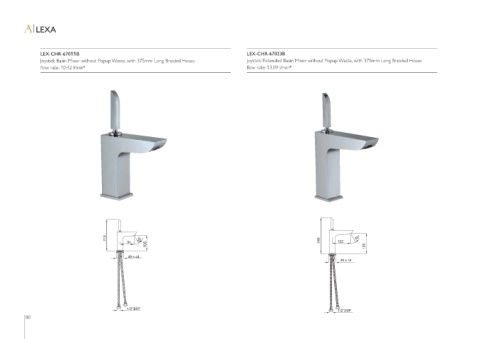 Joystick Basin Mixer without Popup Waste, with 375mm Long Braided Hoses Joystick Extended Basin Mixer without Popup Waste, with 375mm Long Braided Hoses