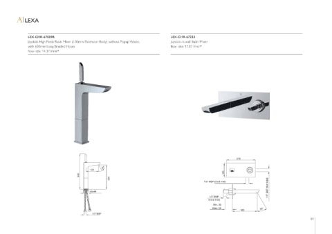 Joystick High Neck Basin Mixer (100mm Extension Body) without Popup Waste, Joystick in-wall Basin Mixer