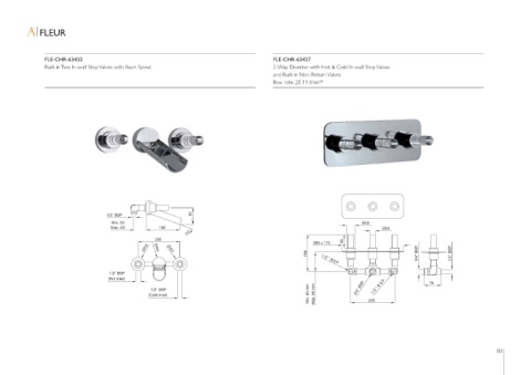 Built-in Two In-wall Stop Valves with Basin Spout 2-Way Diverter with Hot & Cold In-wall Stop Valves