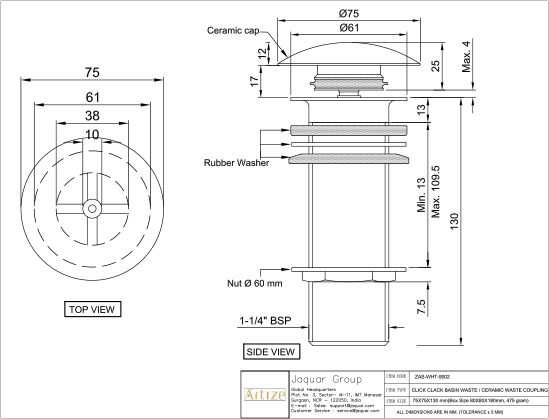 Jaquar reserves the right at its sole discretion, to change/modify/alter any product specification at any time without notice, where improvement can be effected in design, development and dimensions.