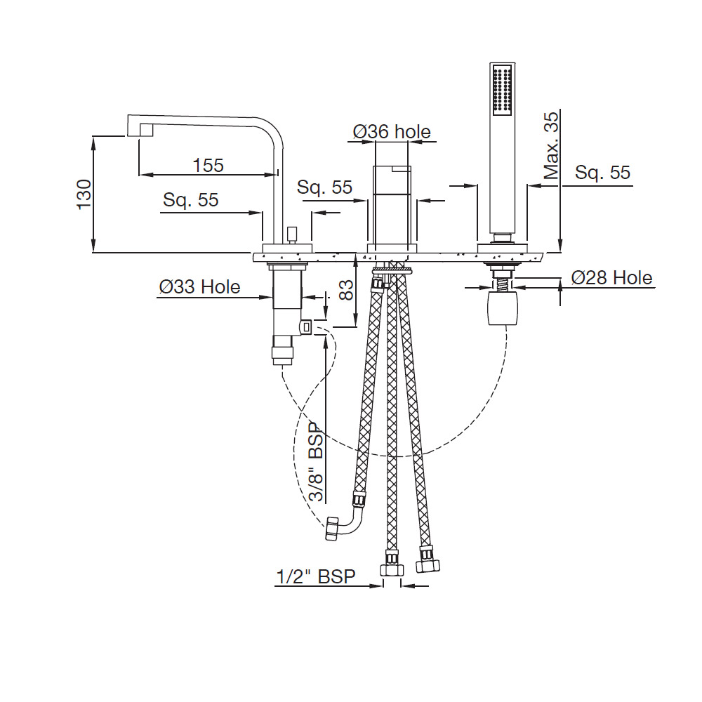 3-Hole Bath & Shower Mixer, Deck Mounted