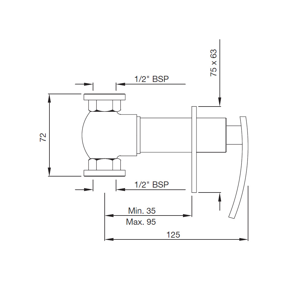 In-wall Stop Valve with Adjustable Wall Flange, Size 15mm (With Exposed and In-wall parts)
