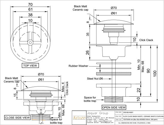 • Jaquar reserves the right at its sole discretion, to change/modify/alter any product specification at any time without notice, where improvement can be effected in design, development and dimensions.