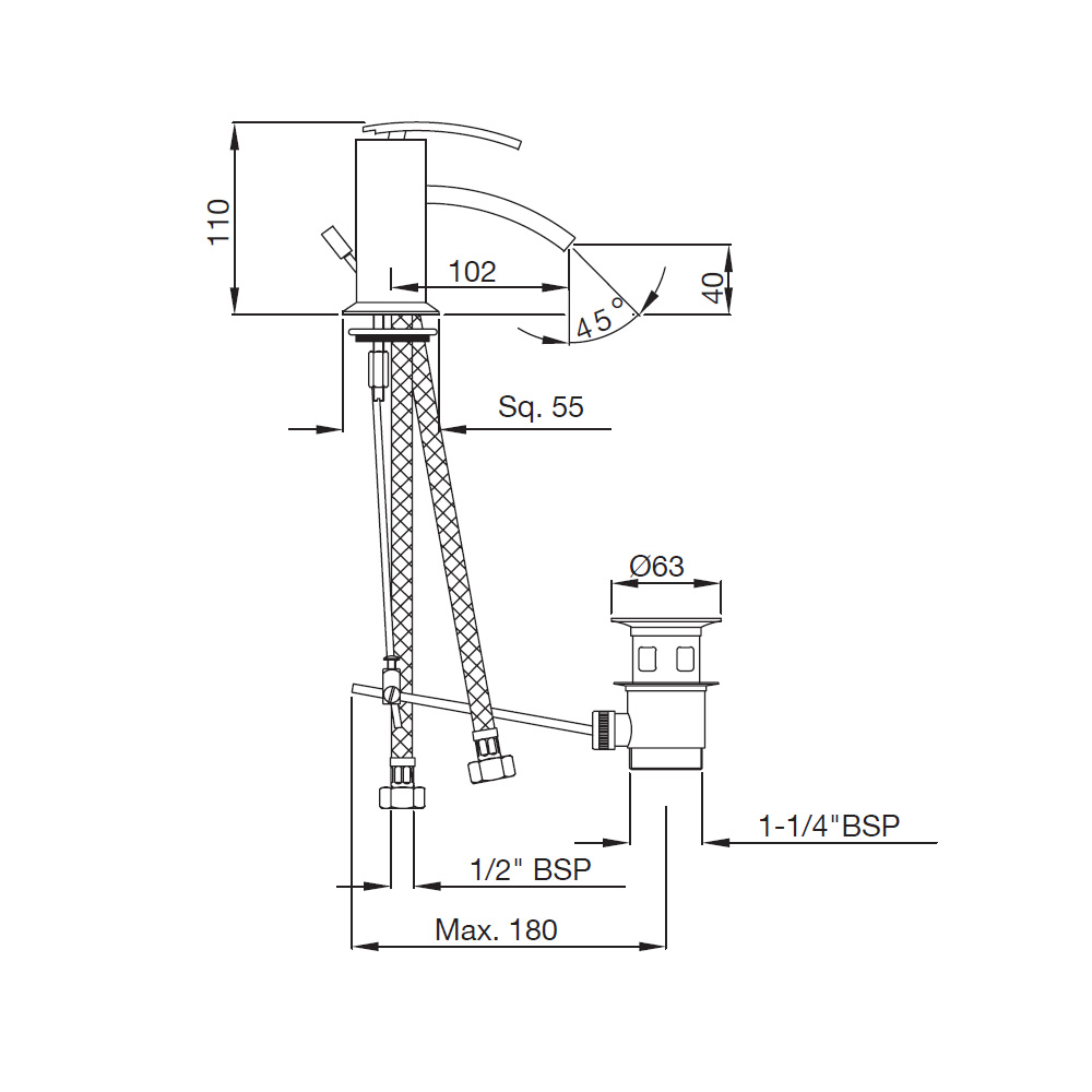 Single Lever Bidet Mixer with Popup Waste & 375mm Long Braided Hoses